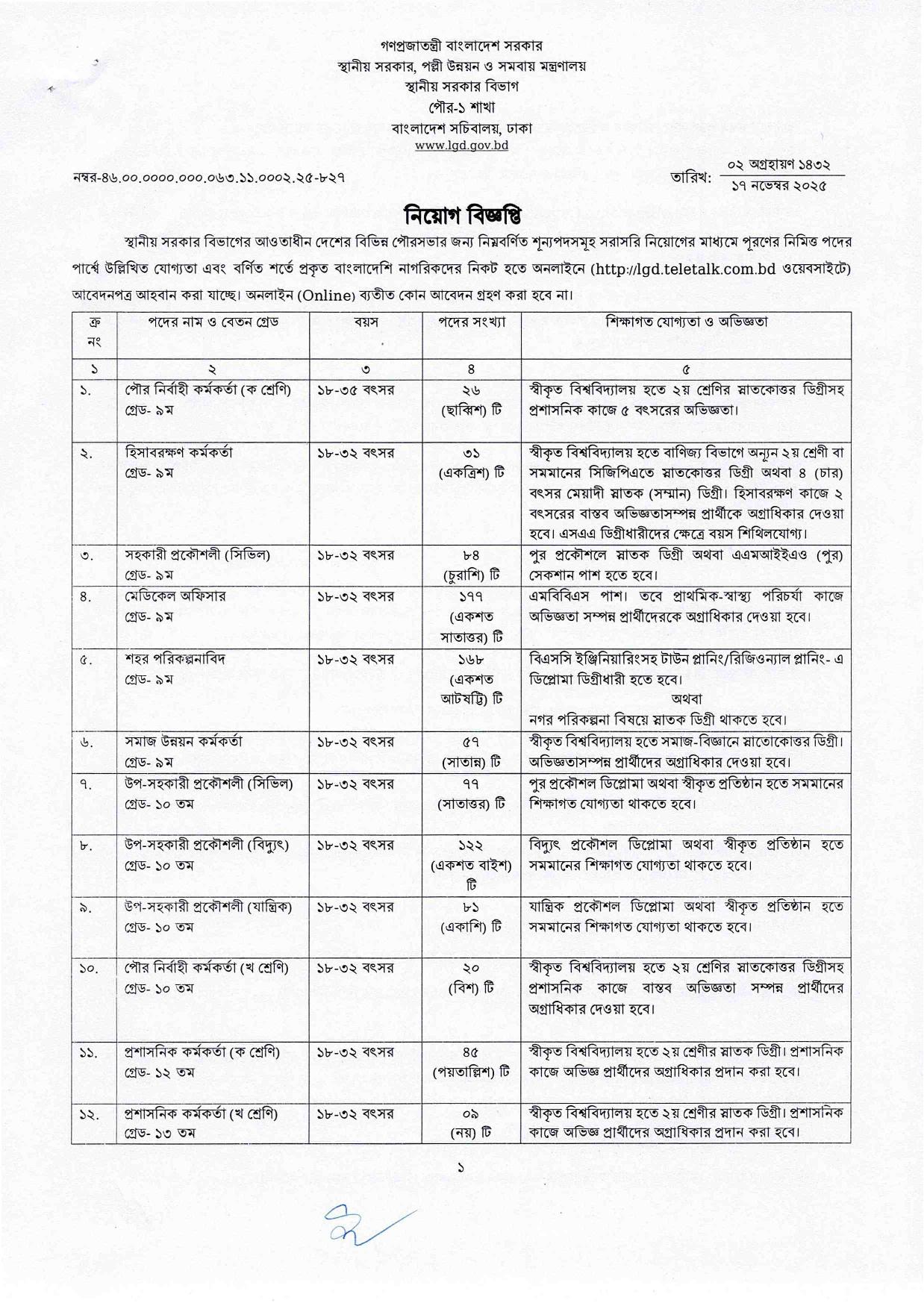 | আবেদন লিংকঃ | http://lgd.teletalk.com.bd |