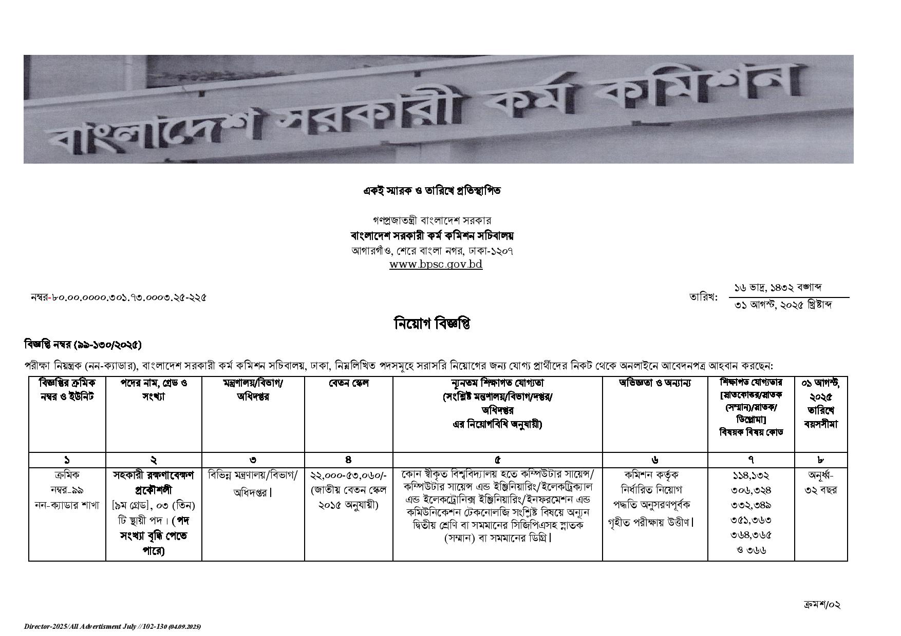 | নিয়োগ বিজ্ঞপ্তি প্রকাশের তারিখঃ | 31 Aug 2025 |